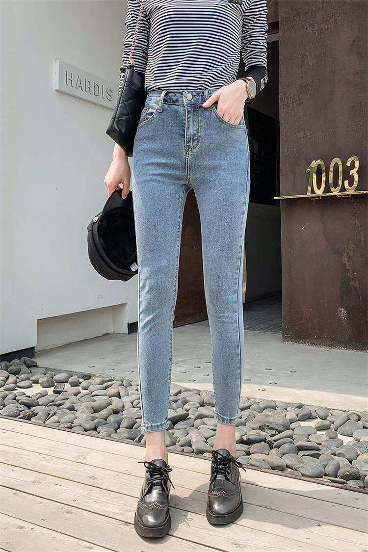2022春夏新款牛仔女式高腰紧身长裤