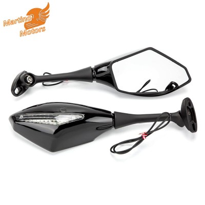 1对摩托车后视镜,带高亮度Led转向信号镜改装配件